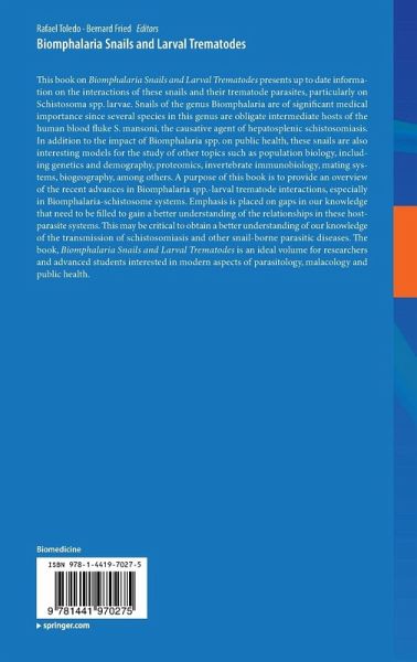 The purpose of this book is to provide an overview of the biology of the planorbid snail Biomphalaria glabrata mainly as related to the snail's role as a host of larval trematodes . This snail is of great importance in medical and economic zoology as a vector of important trematode (fluke) diseases in human and veterinary medicine and in wildlife biology. Moreover, this snail is a useful model for numerous basic studies in biology and chemistry. A book that provides modern coverage of diverse topics from the molecule to the community of this snail as related to larval trematode parasitism is not available. This book should appeal to a wide audience of biologists, ecologists, biochemists, malacologists, parasitologists, public health workers, epidemiologists, and graduate and advanced undergraduate students in biomedical and allied health sciences.