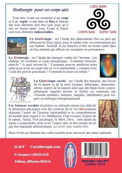 La bioénergie est l'étude des énergies naturelles (bio) qui régissent l'homme. L'homme n'est pas constitué que d'un seul corps physique. Il est constitué de huit corps interconnectés de différentes fréquences : physique, émotif, mental, causal, spirituel, cristal et lumière.Il dispose aussi de chakras qui relient tous les corps, et de canaux qui véhiculent les énergies.Il est important de comprendre comment fonctionnent ces corps et systèmes énergétiques pour mieux comprendre l'homme et les règles qui régissent sa santé.Dans ce manuel, il sera aussi question des aliments énergétiques, et de tous ce qui est favorable à la santé. Nous verrons les procédés pour pouvoir tester soi-même ce qui est favorable ou pas (pierres précieuses, arbres, esprits de la nature, reprogrammation ADN...)Les sciences occultes (cachées) ou métaphysiques (au-delà de la dimension physique) sont des sciences de la vie qui régissent l'esprit de l'homme (sa spiritualité) et sa compréhension du monde dans lequel il vit. Nous démystifierons les plus importantes : la méditation, la clairvoyance, le voyage astral, le viol psychique, les esprits éthériques, le monde astral, la mort, les âmes en peine, Dieu...Autant de sujet qui permettent d'avoir l'esprit sain et de ne plus être manipulé. Car seule la vérité rend libre.Ce livre est complété de : "géobiologie de l'habitat et géobiologie sacrée". car il est illusoire d'être en bonne santé dans un lieu malsain qui affecte ses habitants en permanence. Et le livre "harmonisation des personnes" qui enseigne les soins de tous les corps énergétiques et notamment des parasites qui existent sur chaque corps et qui constituent les esprits des maladies.