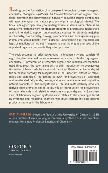 Building on the foundation of a one-year introductory course in organic chemistry, Bioorganic Synthesis: An Introduction focuses on organic reactions involved in the biosynthesis of naturally-occurring organic compounds with special emphasis on natural products of pharmacological interest. The book is designed specifically for undergraduate students, rather than as an exhaustive reference work for graduate students or professional researchers and is intended to support undergraduate courses for students majoring in chemistry, biochemistry, biology, pre-medicine, and bioengineering programs who would benefit from a deeper understanding of the chemical logic of reactions carried out in organisms and the origins and uses of the important organic compounds they often produce. The book assumes no prior background in biochemistry and consists of eight chapters: i) a brief review of relevant topics from introductory organic chemistry; ii) presentation of essential organic and biochemical reactions used throughout the book along with a brief introduction to coenzymes; iii) review of basic carbohydrates and the biosynthesis of amino acids; iv) the terpenoid pathway for biosynthesis of all important classes of terpenoids and steroids; v) the acetate pathway for biosynthesis of saturated and unsaturated fatty acids, prostaglandins and acetate-derived polyketide natural products; vi) the biosynthesis of the shikimate pathway products derived from aromatic amino acids; vii) an introduction to biosynthesis of major alkaloids and related nitrogenous compounds; and viii) an overview of laboratory organic synthesis as it relates to the challenges faced by synthetic and medicinal chemists who must recreate intricate natural product structures in the laboratory.