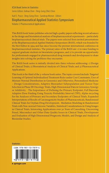 This BASS book Series publishes selected high-quality papers reflecting recent advances in the design and biostatistical analysis of biopharmaceutical experiments - particularly biopharmaceutical clinical trials. The papers were selected from invited presentations at the Biopharmaceutical Applied Statistics Symposium (BASS), which was founded by the first Editor in 1994 and has since become the premier international conference in biopharmaceutical statistics. The primary aims of the BASS are: 1) to raise funding to support graduate students in biostatistics programs, and 2) to provide an opportunity for professionals engaged in pharmaceutical drug research and development to share insights into solving the problems they encounter.