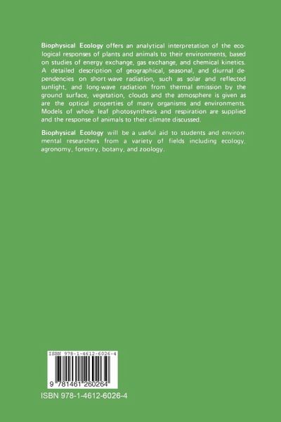 The objective of this book is to make analytical methods available to students of ecology. The text deals with concepts of energy exchange, gas exchange, and chemical kinetics involving the interactions of plants and animals with their environments. The first four chapters are designed to show the applications of biophysical ecology in a preliminary, sim plified manner. Chapters 5-10, treating the topics of radiation, convec tion, conduction, and evaporation, are concerned with the physical environment. The spectral properties of radiation and matter are thoroughly described, as well as the geometrical, instantaneous, daily, and annual amounts of both shortwave and longwave radiation. Later chapters give the more elaborate analytical methods necessary for the study of photosynthesis in plants and energy budgets in animals. The final chapter describes the temperature responses of plants and animals. The discipline of biophysical ecology is rapidly growing, and some important topics and references are not included due to limitations of space, cost, and time. The methodology of some aspects of ecology is illustrated by the subject matter of this book. It is hoped that future students of the subject will carry it far beyond its present status. Ideas for advancing the subject matter of biophysical ecology exceed individual capacities for effort, and even today, many investigators in ecology are studying subjects for which they are inadequately prepared. The potential of modern science, in the minds and hands of skilled investigators, to of the interactions of organisms with their advance our understanding environment is enormous.
