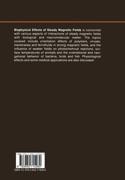 I Diamagnetic Orientation of Macromolecules and Membranes.- Magnetic Birefringence in Polymers and Polyelectrolytes.- Propagation and Generation of High-Frequency Ultrasonic Waves in Magnetically Oriented Lyotropic Liquid Crystals.- Liquid Crystals and Virus Solutions in Strong Magnetic Fields.- Magnetic Damping of Orientational Fluctuations in Nematics with Negative Diamagnetic Anisotropy.- Magnetic Birefringence Study of Fibrin Formation and Chylomicron Behaviour in Human Blood Plasma.- Diamagnetic Anisotropy of Proteins and Magnetic Orientation of Biological Membranes and Protein Assemblies.- Superdiamagnetism in Lipid Monolayers.- Magnetic Field Effect on the Gel-Liquid Crystal Phase Transition of Phospholipid Membranes.- Membrane Responses to Magnetic and Electromagnetic Fields.- II Ferrofluids.- Wetting of Solids by Ferrofluids.- Ionic Ferrofluids: Physico-Chemical Aspects.- Ferrofluids in Lyotropic Nematic Liquid Crystals.- III Biological and Chemical Photoreactions.- Magnetic Field Effect on Photosynthetic Reactions.- Polymethylene-Linked Radical Ion Pairs in Magnetic Fields.- Study of Polymer Dynamics by Magnetic Field-Dependent Biradical Reactions.- Model for a Physiological Magnetic Compass.- Retinal Response to Variations of the Earth's Magnetic Field.- Influence of Geomagnetic Field Alterations on Electric Retinal Potentials and Dark Adaptation in Humans.- Effects of Earth-Strength Magnetic Stimuli on the Pineal Gland and Central Nervous Neurons. A Short Review.- IV Physiological Effects and Animal Development.- Static Magnetic Fields Influence the Evoked Potentials of Man.- The Influence of Static Magnetic Fields on Skin Temperature and Blood Flow in Man.- Magnetic Field-Induced Blood Flow Changes in Frogs and Red-Green Vision of Man AfterNMR-Tomography.- Magnetic Field Driven Thermal Convection in Air: A Mechanism for Field-Induced Skin Temperature Changes in Animals.- Embryonic Development of the Quail in Strong Magnetic Fields.- V Animal Orientation and Magnetoreception.- A Review of Magnetic Effects on Homing Pigeon Orientation.- A Further Analysis of the Orientation Behavior of Homing Pigeons Released Within Magnetic Anomalies.- Pigeon Homing: The Use of Magnetic Information in Position Finding.- Homing Experiments with Pigeons at the Magnetic Equator.- Magnetic Orientation and Magnetically Sensitive Material in Migratory Birds.- Magnetite and Magnetotaxis in Bacteria and Algae.- Biogenic Magnetite in Higher Organisms and the Current Status of the Hypothesis of Ferrimagnetic Magnetoreception.- The Effect of Ultrahigh Magnetic Fields on the Initial Orientation of Homing Pigeons.- Experimental and Correlational Studies of Responses to Magnetic Field Stimuli by Different Species.- The Cetacean Geomagnetic Travel Strategy.- A Mathematical Model for Magnetic Navigation by Animals.- VI Applications in NMR and Medecine.- Magnets for NMR Imaging and Spectroscopy.- In Vivo NMR Spectroscopy of Mammalian Nervous Systems.- The Cytoplasmic pH of the Green Alga Chlorella fusca, Measured by 31-P-NMR Spectroscopy.- Magnetic Mapping of the Human Thorax Using a SQUID Magnetometer.- Index of Contributors.