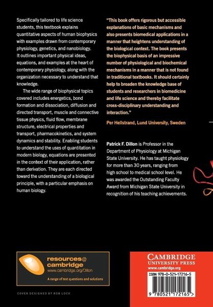 Specifically tailored to life science students, this textbook explains quantitative aspects of human biophysics with examples drawn from contemporary physiology, genetics and nanobiology. It outlines important physical ideas, equations and examples at the heart of contemporary physiology, along with the organization necessary to understand that knowledge. The wide range of biophysical topics covered include energetics, bond formation and dissociation, diffusion and directed transport, muscle and connective tissue physics, fluid flow, membrane structure, electrical properties and transport, pharmacokinetics and system dynamics and stability. Enabling students to understand the uses of quantitation in modern biology, equations are presented in the context of their application, rather than derivation. They are each directed toward the understanding of a biological principle, with a particular emphasis on human biology. Supplementary resources, including a range of test questions, are available at www.cambridge.org/9781107001442.