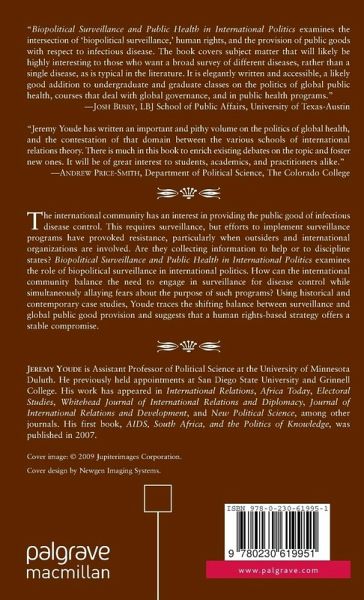 Using historical and contemporary case studies, Youde traces the shifting balance between surveillance and global public good provision and suggests that a human rights-based strategy offers a stable compromise.