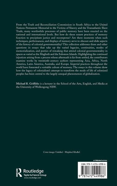 I: Continuities: Neocolonialism and Governmentality; 1: Regarding Self-Governmentality: Transactional Accidents and Indigeneity in Cape York Peninsula, Australia 1; 2: Postcolonial Security, Development, and Biopolitics: Targeting Women's Lives in Solomon Islands; 3: "Backdoor Entry" to Australia: A Genealogy of (Post)colonial Resentment; 4: Interculturalism, Settler Colonialism, and the Contest Over "Nativeness"; II: Literature and Culture After Colonial Governmentality; 5: "The World is Spoilt in the White Man's Time": Imagining Postcolonial Temporalities; 6: Remembering Histories of Care: Clinic and Archive in Anil's Ghost; 7: Embodied Memories: Settler Colonial Biopolitics and Multiple Genealogies in Deborah Miranda's; 8: Post-Presentational: The Literature of Colonial Memory in Australia and Latin America After Neoliberalism; 9: Sedimented Colonizations in the Maghrebine Writings of Kateb Yacine, Assia Djebar, and Paul Bowles; 10: Memory is an Archipelago: Glissant, Chamoiseau, and the Literary Expression of Cultural Memory; 11: Precarious/Sense: Memory and the Poetics of Spatial Performance; 12: "Speaking Darwish" in Neoliberal Palestine