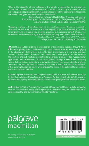 "Engaging, original and trans-disciplinary at its core, Stapleton and Byers have curated a volume of critical interpretations of utopian biopolitical projects. Contributors analyze far-ranging State techniques that imagine, produce and reproduce perfect citizens. The collection is vitally necessary to grasp modern world-making, near futures and their effects." - Lisa Jean Moore, Professor of Sociology, SUNY Purchase College, USA, the co-author of Missing Bodies (2009)