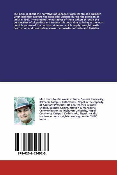 This book is about the narratives of Sahadat Hasan Manto and Rajinder Singh Bedi that capture the genocidal violence during the partition of India in 1947. Interpreting the narratives of these writers through the perspectives of biopolitics and trauma,this book aims to bring in the most horrible picture of the partition violence, which simply brought death, destruction and devastation across the boarders of India and Pakistan.