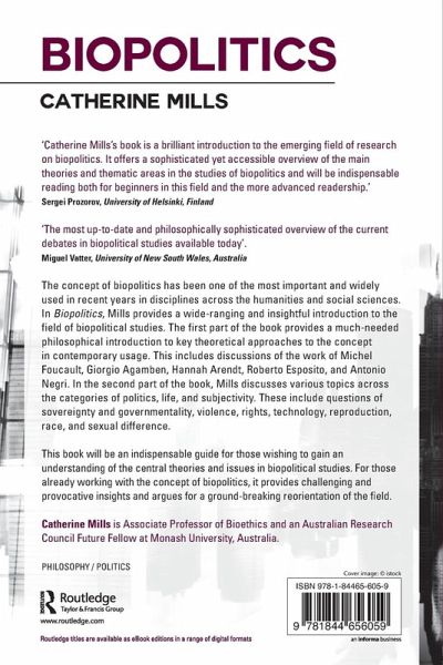 The first part of the book provides a much-needed philosophical introduction to key theoretical approaches to the concept in contemporary usage. In the second part of the book, Mills discusses various topics across the categories of politics, life and subjectivity.