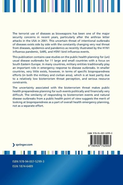 This publication contains case studies on the public health planning for (un)usual disease outbreaks for 11 large and small countries with a focus on South Eastern Europe. In many countries, military entities traditionally play an important role in emergency response to disease outbreaks. In smaller countries, very little exists, however, in terms of specific biopreparedness efforts (in both the military and civilian area), which is at least partly due to a relatively low bioterrorism threat perception, and serious resource constraints.