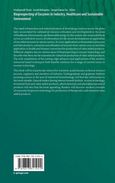 The rapid urbanization and industrialization of developing countries across the globe have necessitated for substantial resource utilization and development in the areas of Healthcare, Environment, and Renewable energy. In this context ,this resourceful book serves as a definitive source of information for the recent developments in application of microbial enzymes in various sectors. It covers applications in fermentation processes and their products, extraction and utilisation of enzymes from various sources and their application in health and biomass conversion for production of value added products. Different chapters discuss various areas of bioprospecting in enzyme technology, and describe why these are the mainstays for industrial production of value added products. The rich compilation of the cutting-edge advances and applications of the modern industrial based techniques hold feasible solutions for a range of current issues in enzyme technology. This book will be of particular interest for scientists, academicians, technical resource persons, engineers and members of industry. Undergraduate and graduate students pursuing courses in the area of industrial biotechnology will find the information in the book valuable. General readers having interest towards biofuels, enzyme technology, fermented food and value added products, phytochemicals and phytopharmaceutical products will also find the book appealing. Readers will discover modern concepts of enzymatic bioprocess technology for production of therapeutics and industrial value added products.