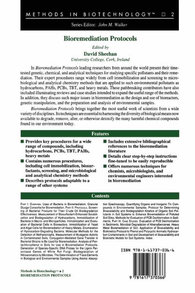 "...a practical addition to the series of books in Methods in Biotechnology....It will be a useful reference book to those involved with experimental protocols in the area of bioremediation. Given the extremely wide range of pollutants, as well as the techniques that are or could be used in the bioremediation field, this book does a very good job in presenting a variety of methods,...Finally, the book ends with a comprehensive listing of abbreviations and acronyms and a useful subject index. This is a well-presented and useful book for researchers in the bioremediation field."-Applied Biochemistry and Biotechnology
