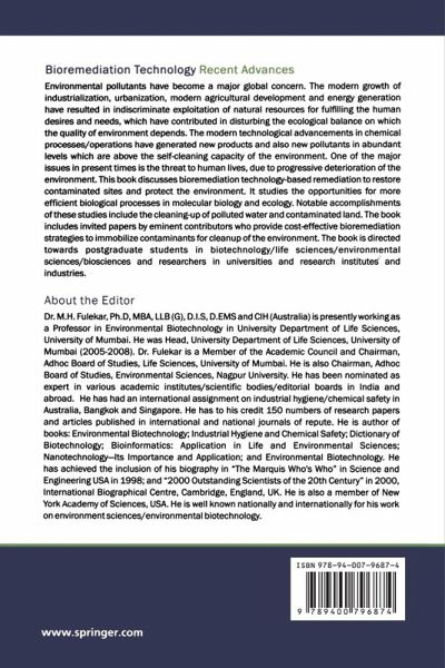 This book discusses bioremediation technology-based remediation to restore contaminated sites and protect the environment. It studies the opportunities for more efficient biological processes in molecular biology and ecology. Notable accomplishments of these studies include the cleaning up of polluted water and contaminated land. The book includes invited papers by eminent contributors who provide cost-effective bioremediation strategies to immobilize contaminants for cleanup of environment. The book is directed towards postgraduate students in biotechnology/life sciences/environmental sciences/biosciences and researchers in universities and research institutes and industries.