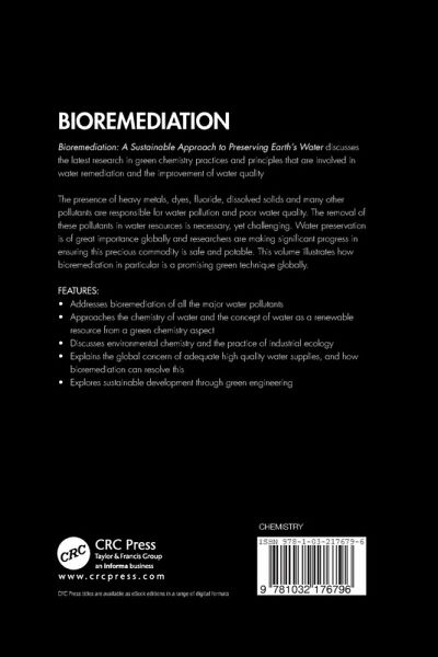 Bioremediation: A Sustainable Approach to Preserving Earth's Water discusses the latest research in green chemistry practices and principles that are involved in water remediation and the quality improvement of water. The presence of heavy metals, dyes, fluoride, dissolved solids and many other pollutants are responsible for water pollution and poor water quality. The removal of these pollutants in water resources is necessary, yet challenging. Water preservation is of great importance globally and researchers are making significant progress in ensuring this precious commodity is safe and potable. This volume illustrates how bioremediation in particular is a promising green technique globally. Features: Addresses bioremediation of all the major water pollutants Approaches the chemistry of water and the concept of water as a renewable resource from a green chemistry aspect Discusses environmental chemistry and the practice of industrial ecology Explains the global concern of adequate high quality water supplies, and how bioremediation can resolve this Explores sustainable development through green engineering