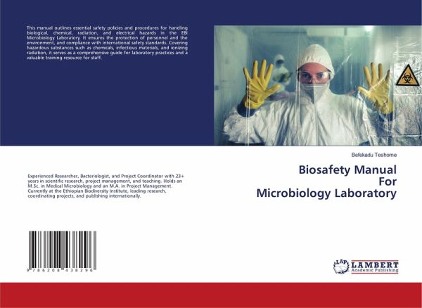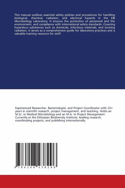 This manual outlines essential safety policies and procedures for handling biological, chemical, radiation, and electrical hazards in the EBI Microbiology Laboratory. It ensures the protection of personnel and the environment, and compliance with international safety standards. Covering hazardous substances such as chemicals, infectious materials, and ionizing radiation, it serves as a comprehensive guide for laboratory practices and a valuable training resource for staff.