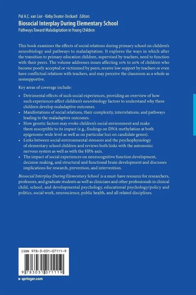 This book examines the effects of social relations during primary school on children's neurobiology and pathways to maladaptation. It explores the ways in which after the transition to primary education children, supervised by teachers, need to function with their peers. The volume addresses issues affecting 10% to 20% of children who become poorly accepted or victimized by peers, receive low support by teachers or even have conflictual relations with teachers, and may perceive the classroom as a whole as nonsupportive.
