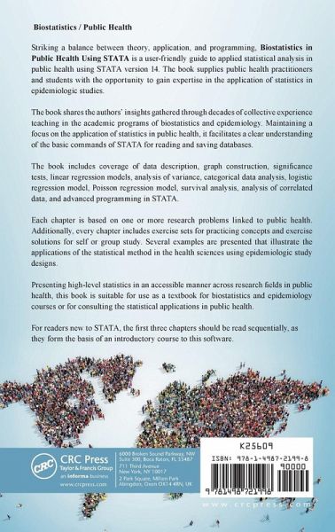 Striking a balance between theory, application, and programming, Biostatistics in Public Health Using STATA is a user-friendly guide to applied statistical analysis in public health using STATA version 14. The book supplies public health practitioners and students with the opportunity to gain expertise in the application of statistics in epidemiologic studies. The book shares the authors' insights gathered through decades of collective experience teaching in the academic programs of biostatistics and epidemiology. Maintaining a focus on the application of statistics in public health, it facilitates a clear understanding of the basic commands of STATA for reading and saving databases. The book includes coverage of data description, graph construction, significance tests, linear regression models, analysis of variance, categorical data analysis, logistic regression model, poisson regression model, survival analysis, analysis of correlated data, and advanced programming in STATA. Each chapter is based on one or more research problems linked to public health. Additionally, every chapter includes exercise sets for practicing concepts and exercise solutions for self or group study. Several examples are presented that illustrate the applications of the statistical method in the health sciences using epidemiologic study designs. Presenting high-level statistics in an accessible manner across research fields in public health, this book is suitable for use as a textbook for biostatistics and epidemiology courses or for consulting the statistical applications in public health. For readers new to STATA, the first three chapters should be read sequentially, as they form the basis of an introductory course to this software.