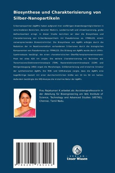 Silbernanopartikel (AgNPs) haben aufgrund ihrer vielfältigen Anwendungsmöglichkeiten in verschiedenen Bereichen, darunter Medizin, Landwirtschaft und Umweltsanierung, große Aufmerksamkeit erregt. In dieser Studie berichten wir über die Biosynthese und Charakterisierung von Silber-Nanopartikeln mit Pseudomonas sp. FPMKU20, einem vielversprechenden Biokontrollmittel. Die Biosynthese von AgNPs erfolgte durch die Reduktion der im Reaktionsmedium vorhandenen Silberionen durch die biologischen Komponenten von Pseudomonas sp. FPMKU20. Die Bildung von AgNPs wurde durch UV-Vis-Spektroskopie bestätigt, die einen charakteristischen Oberflächenplasmonenresonanz-Peak bei etwa 420 nm zeigte. Die weitere Charakterisierung mit Techniken wie Transmissions-Elektronenmikroskopie (TEM), Rasterelektronenmikroskopie (SEM) und Röntgenbeugung (XRD) ergab die Morphologie, Größenverteilung und kristalline Struktur der synthetisierten AgNPs. Die TEM- und SEM-Analyse zeigte, dass die AgNPs eine kugelförmigeGestalt mit einer durchschnittlichen Größe von 10 bis 50 nm hatten. Außerdem bestätigte die XRD-Analyse die kristalline Natur der AgNPs.