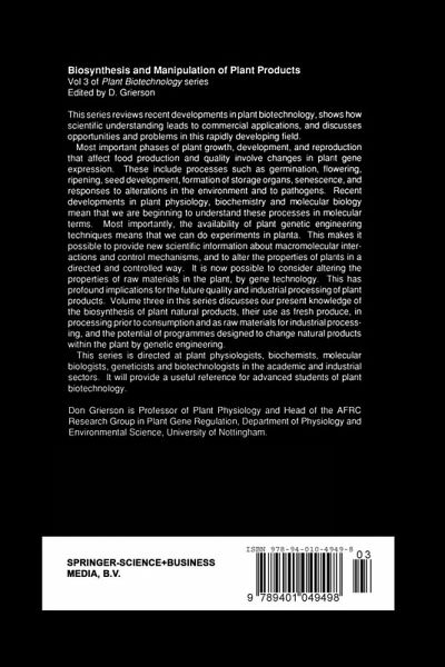 Volumes I and 2 of this Plant Biotechnology series reviewed fundamental aspects of plant molecular biology and discussed production and analysis of the first generation of transgenic plants of potential use in agriculture and horticulture. These included plants resistant to insects, viruses and herbicides, which were produced by adding genes from other organisms. Realisation of the potential of plant breeding has led to a resurgence of interest in methods of altering the structure, composition and function of plant constituents, which represents an even greater challenge and offers scope for improving the quality of a wide range of agricultural products. This, in tum, has resulted in a re-evaluation of priorities and targets by industry. Volume 3 of this series considers the biochemical and gentic basis of the biosynthesis of plant products such as starch, lipids, carotenoids and cell walls, and evaluates the ways in which biosynthesis of these products can be modified for use inthe food industries. Authors also cover the biosynthesis of rare secondary products and the function and application of proteins for plant protection and therapeutic use. The emphasis throughout is on the relationship between fundamen tal aspects of biosynthesis and structure-function relationships, and application of this knowledge to the redesigning and altering of plant products by molecular genetics.