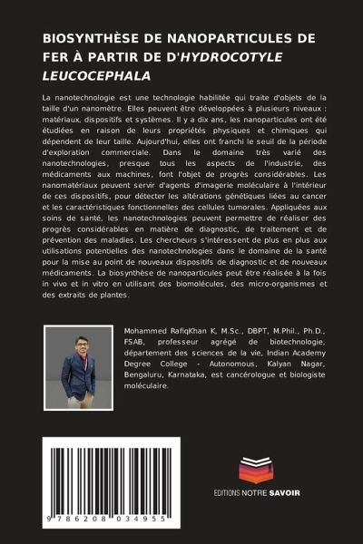 La nanotechnologie est une technologie habilitée qui traite d'objets de la taille d'un nanomètre. Elles peuvent être développées à plusieurs niveaux : matériaux, dispositifs et systèmes. Il y a dix ans, les nanoparticules ont été étudiées en raison de leurs propriétés physiques et chimiques qui dépendent de leur taille. Aujourd'hui, elles ont franchi le seuil de la période d'exploration commerciale. Dans le domaine très varié des nanotechnologies, presque tous les aspects de l'industrie, des médicaments aux machines, font l'objet de progrès considérables. Les nanomatériaux peuvent servir d'agents d'imagerie moléculaire à l'intérieur de ces dispositifs, pour détecter les altérations génétiques liées au cancer et les caractéristiques fonctionnelles des cellules tumorales. Appliquées aux soins de santé, les nanotechnologies peuvent permettre de réaliser des progrès considérables en matière de diagnostic, de traitement et de prévention des maladies. Les chercheurs s'intéressent de plus en plus aux utilisations potentielles des nanotechnologies dans le domaine de la santé pour la mise au point de nouveaux dispositifs de diagnostic et de nouveaux médicaments. La biosynthèse de nanoparticules peut être réalisée à la fois in vivo et in vitro en utilisant des biomolécules, des micro-organismes et des extraits de plantes.