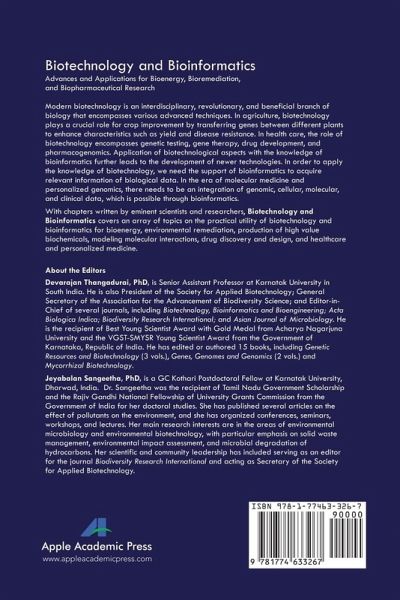Devarajan Thangadurai is senior assistant professor at Karnatak University in South India. He is also president of the Society for Applied Biotechnology; general secretary of the Association for the Advancement of Biodiversity Science; and journal editor-in-chief of several journals: Biotechnology, Bioinformatics and Bioengineering; Acta Biologica Indica; Biodiversity Research International; and Asian Journal of Microbiology. He received his PhD in botany from Sri Krishnadevaraya University in South India (2003). During 2002-2004, he worked as CSIR Senior Research Fellow with funding from the Ministry of Science and Technology, Government of India. He served as a postdoctoral fellow at the University of Madeira (Portugal), University of Delhi (India), and ICAR National Research Centre for Banana (India) from 2004 to 2006. He is the recipient of Best Young Scientist Award with Gold Medal from Acharya Nagarjuna University (2003) and the VGST-SMYSR Young Scientist Award of Government of Karnataka, Republic of India (2011). He has edited or authored 15 books, including Genetic Resources and Biotechnology (3 vols.), Genes, Genomes and Genomics (2 vols.) and Mycorrhizal Biotechnology, with publishers of national and international reputation. Jeyabalan Sangeetha earned his BSc in microbiology (2001) and PhD in environmental sciences (2010) from Bharathidasan University, Tiruchirappalli, Tamil Nadu, India. She also holds an MSc in environmental sciences (2003) from Bharathiar University, Coimbatore, Tamil Nadu, India. Between 2004 and 2008, she was the recipient of Tamil Nadu Government Scholarship and the Rajiv Gandhi National Fellowship of University Grants Commission, Government of India for her doctoral studies. She has published approximately 20 manuscripts detailing the effect of pollutants on the environment, and she has organized conferences, seminars, workshops, and lectures. Her main research interests are in the areas of environmental microbiology and environmental biotechnology, with particular emphasis on solid waste management, environmental impact assessment and microbial degradation of hydrocarbons. Her scientific and community leadership have included serving as an editor of the Journal of Biodiversity Research International, and acting secretary of the Society for Applied Biotechnology. Presently, she is the UGC Kothari Postdoctoral Fellow at Karnatak University in South India.