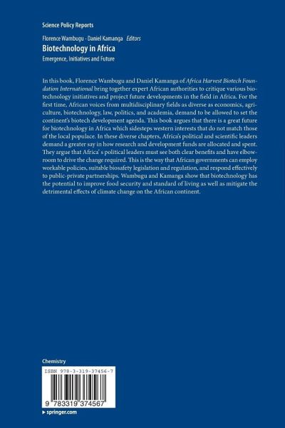 In this book, Florence Wambugu and Daniel Kamanga of Africa Harvest Biotech Foundation International bring together expert African authorities to critique various biotechnology initiatives and project future developments in the field in Africa. For the first time, African voices from multidisciplinary fields as diverse as economics, agriculture, biotechnology, law, politics and academia, demand to be allowed to set the continent's biotech development agenda. This book argues that there is a great future for biotechnology in Africa which sidesteps western interests that do not match those of the local populace. In these diverse chapters, Africa's political and scientific leaders demand a greater say in how research and development funds are allocated and spent. They argue that Africa's political leaders must see both clear benefits and have elbow-room to drive the change required. This is the way that African governments can employ workable policies, suitable biosafety legislationand regulation and respond effectively to public-private partnerships. Wambugu and Kamanga show that biotechnology has the potential to improve food security and standard of living as well as mitigate the detrimental effects of climate change on the African continent.