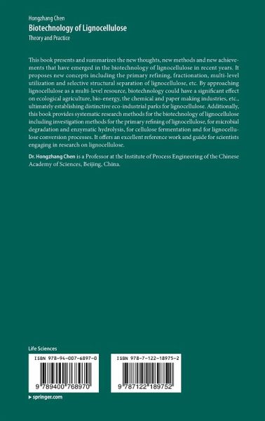 This book presents and summarizes the new thoughts, new methods and new achievements that have emerged in the biotechnology of lignocellulose in recent years. It proposes new concepts including the primary refining, fractionation, multi-level utilization and selective structural separation of lignocellulose, etc. By approaching lignocellulose as a multi-level resource, biotechnology could have a significant effect on ecological agriculture, bio-energy, the chemical and paper making industries, etc., ultimately establishing distinctive eco-industrial parks for lignocellulose. Additionally, this book provides systematic research methods for the biotechnology of lignocellulose including investigation methods for the primary refining of lignocellulose, for microbial degradation and enzymatic hydrolysis, for cellulose fermentation and for lignocellulose conversion processes. It offers an excellent reference work and guide for scientists engaging in research on lignocellulose. Dr. Hongzhang Chen is a Professor at the Institute of Process Engineering of the Chinese Academy of Sciences, Beijing, China.