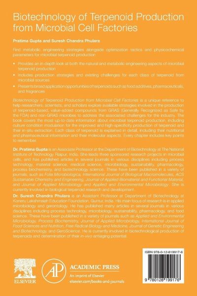 Biotechnology of Terpenoid Production from Microbial Cell Factories is a unique reference to help researchers, scientists and scholars explore available strategies involved in the production of terpenoid-based, value-added compounds from GRAS status (Generally Recognized as Safe by FDA) microbes to address the associated challenges for the industry. The book covers the most up-to-date information about microbial terpenoid production, including culture condition modulation for the improved and high-specificity production of terpenoid and their in-situ extraction. Each class of terpenoid is…mehr