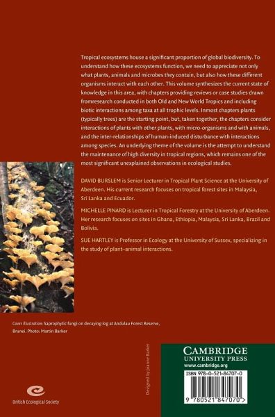 Tropical ecosystems house a significant proportion of global biodiversity. To understand how these ecosystems function we need to appreciate not only what plants, animals and microbes they contain, but also how they interact with each other. This volume, first published in 2005, synthesises the state of knowledge in this area, with chapters providing reviews or case studies drawn from research conducted in both Old and New World tropics and including biotic interactions among taxa at all trophic levels. In most chapters plants (typically trees) are the starting point, but, taken together, the chapters consider interactions of plants with other plants, with micro-organisms and with animals, and the inter-relationships of human-induced disturbance with interactions among species. An underlying theme of the volume is the attempt to understand the maintenance of high diversity in tropical regions, which remains one of the most significant unexplained observations in ecological studies.