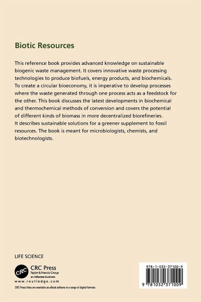 This reference book provides advanced knowledge on sustainable biogenic waste management. It covers innovative waste processing technologies to produce biofuels, energy products, and biochemicals. To create a circular bioeconomy, it is imperative to develop processes where the waste generated through one process acts as a feedstock for the other. This book discusses the latest developments in biochemical and thermochemical methods of conversion and covers the potential of different kinds of biomass in more decentralized biorefineries. It describes sustainable solutions for a greener supplement to fossil resources. The book is meant for microbiologists, chemists, and biotechnologists.