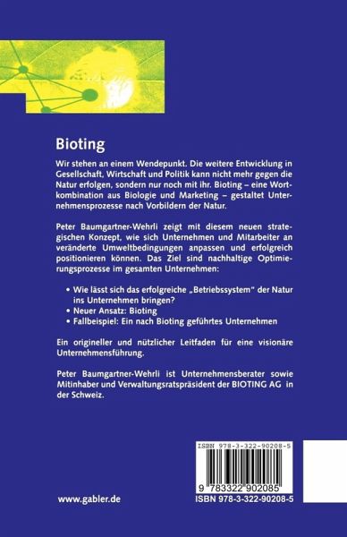 Wir stehen an einem Wendepunkt. Die weitere Entwicklung in Gesellschaft, Wirtschaft und Politik kann nicht mehr gegen die Natur erfolgen, sondern nur noch mit ihr. Bioting - eine Wortkombination aus Biologie und Marketing - gestaltet