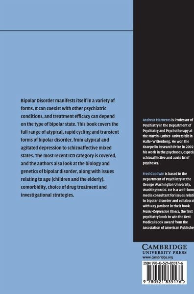 Bipolar disorder manifests itself in a variety of forms. It can coexist with other psychiatric conditions, and treatment efficacy can depend on the type of bipolar state. This book covers the full range of atypical, rapid cycling and transient forms of bipolar disorder, from atypical and agitated depression to schizoaffective mixed states. The most recent ICD category is covered, and the authors also look at the biology and genetics of bipolar disorder, along with issues relating to age (children and the elderly), comorbidity, choice of drug treatment and investigational strategies.