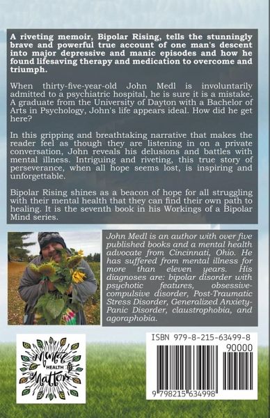 A riveting memoir, Bipolar Rising, tells the stunningly brave and powerful true account of one man's descent into major depressive and manic episodes and how he found lifesaving therapy and medication to overcome and triumph. When thirty-five-year-old John Medl is involuntarily admitted to a psychiatric hospital, he is sure it is a mistake. A graduate from the University of Dayton with a Bachelor of Arts in Psychology, John's life appears ideal. How did he get here? In this gripping and breathtaking narrative that makes the reader feel as though they are listening in on a private conversation, John reveals his delusions and battles with mental illness. Intriguing and riveting, this true story of perseverance, when all hope seems lost, is inspiring and unforgettable. Bipolar Rising shines as a beacon of hope for all struggling with their mental health that they can find their own path to healing. It is the seventh book in his Workings of a Bipolar Mind series. Get it Now!