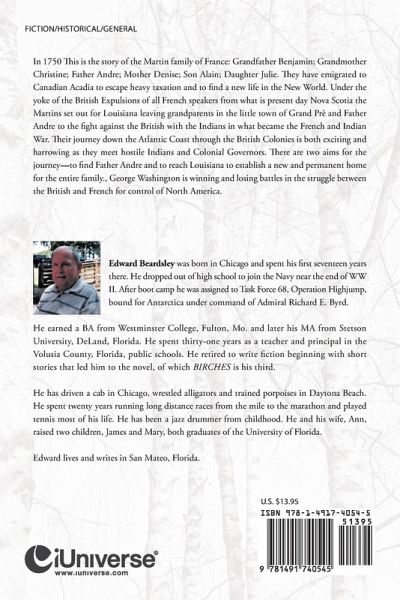 In 1750 This is the story of the Martin family of France: Grandfather Benjamin; Grandmother Christine; Father Andre; Mother Denise; Son Alain; Daughter Julie. They have emigrated to Canadian Acadia to escape heavy taxation and to find a new life in the New World. Under the yoke of the British Expulsions of all French speakers from what is present day Nova Scotia the Martins set out for Louisiana leaving grandparents in the little town of Grand Prè and Father Andre to the fight against the British with the Indians in what became the French and Indian War. Their journey down the Atlantic Coast…mehr