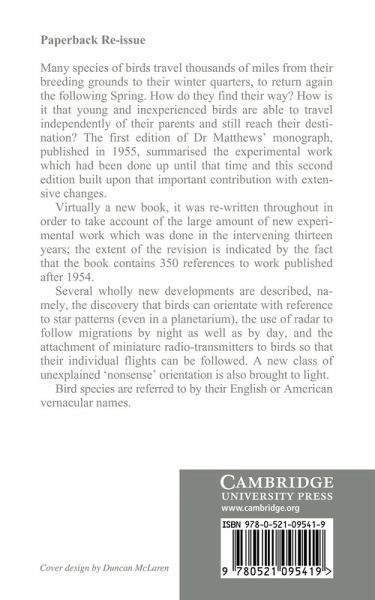 This second edition of Dr Matthews' monograph introduces newer developments in bird navigation research since the first edition.