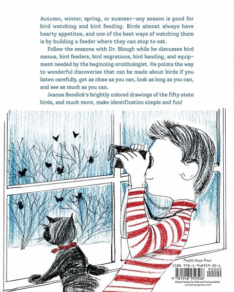 Autumn, winter, spring, or summer-any season is good for bird watching and bird feeding. For birds almost always have hearty appetites, and one of the best ways of watching them is by building a feeder where they can stop to eat. Follow the seasons with Dr. Blough in this new science nature book while he discusses bird menus, bird feeders, bird migrations, bird banding, and the equipment needed by the beginning ornithologist. He tells what to look for and points the way to wonderful discoveries that can be made about birds if you listen carefully, get as close as you can, look as long as you can, and see as much as you can. Jeanne Bendick's brightly colored drawings make identification of the fifty state birds, and much more, simple and fun!