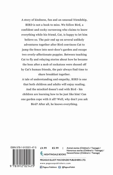 A story of kindness, fun and an unusual friendship, BIRD is not a book to miss. We follow Bird, a confident and cocky currawong who claims to know everything while his friend, Cat, is happy to let him believe so. The pair end up on several unlikely adventures together after Bird convinces Cat to jump the fence into next-door's garden and escape two overly-affectionate puppies. Between teaching Cat to fly and relaying stories about how he became the boss after a mob of cockatoos were shooed off by Cat's human friends, the pair always find time to share breakfast together. A tale of understanding and empathy, BIRD is one that both children and adults will enjoy reading. And the mischief doesn't end with Bird - his children are learning how to be just like him! Can one garden cope with it all? Well, why don't you ask Bird? After all, he knows everything.