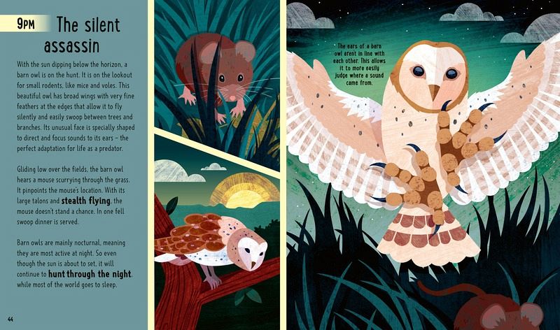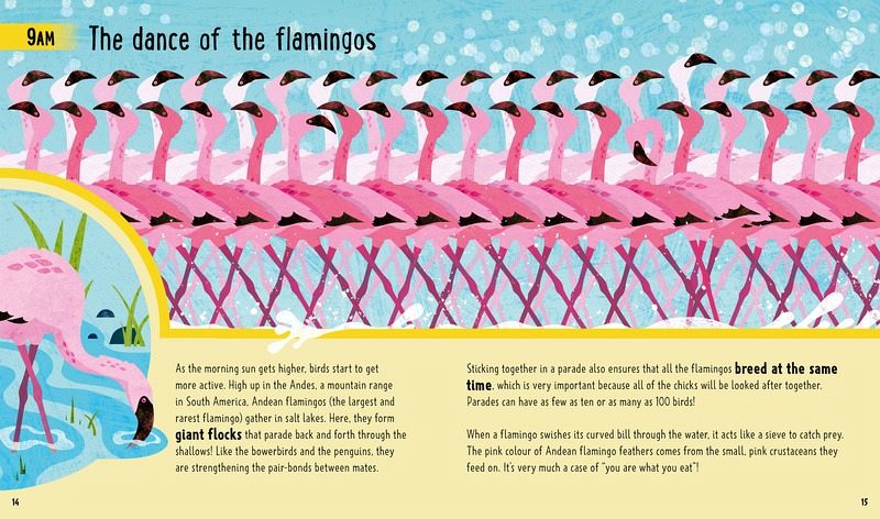A beautifully illustrated non-fiction story for kids about birds, following owls, flamingos, penguins, and more over the course of one day.
