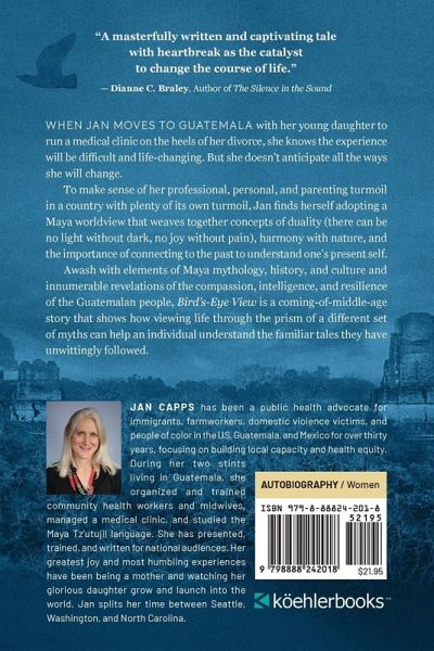 When Jan Moves to Guatemala with her young daughter to run a medical clinic on the heels of her divorce, she knows the experience will be difficult and life-changing. But she doesn't anticipate all the ways she will change. To make sense of her professional, personal, and parenting turmoil in a country with plenty of its own turmoil, Jan finds herself adopting a Maya worldview that weaves together concepts of duality (there can be no light without dark, no joy without pain), harmony with nature, and the importance of connecting to the past to understand one's present self. Awash with elements of Maya mythology, history, and culture and innumerable revelations of the compassion, intelligence, and resilience of the Guatemalan people, Bird's-Eye View is a coming-of-middle-age story that shows how viewing life through the prism of a different set of myths can help an individual understand the familiar tales they have unwittingly followed.