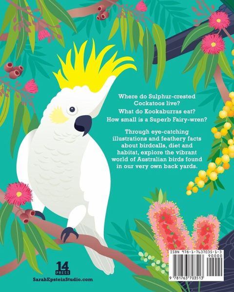 Explore the vibrant world of Australian birds in this non-fiction book for bird lovers of all ages. Where do Sulphur-crested Cockatoos live? What do Kookaburras eat? How small is a Superb Fairy-wren? Through eye-catching illustrations and feathery facts about birdcalls, diet and habitat, this book showcases the wild beauty and diversity of Australia's birdlife found in our very own back yards.