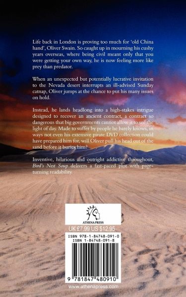 Life back in London is proving too much for 'old China hand', Oliver Swain. So caught up in mourning his cushy years overseas, where being civil meant only that you were getting your own way, he is now feeling more like prey than predator. When an unexpected but potentially lucrative invitation to the Nevada desert interrupts an ill-advised Sunday catnap, Oliver jumps at the chance to put his many issues on hold. Instead, he lands headlong into a high-stakes intrigue designed to recover an ancient contract, a contract so dangerous that big governments cannot allow it to see the light of day. Made to suffer by people he barely knows, in ways not even his extensive pirate DVD collection could have prepared him for, will Oliver pull his head out of the sand before it buries him? Inventive, hilarious and outright addictive throughout, Bird's Nest Soup delivers a fast-paced plot with page-turning readability.