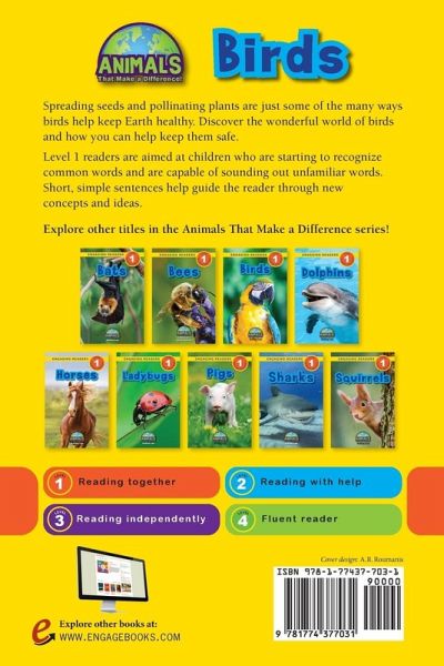 Spreading seeds and pollinating plants are just some of the many ways birds help keep Earth healthy. Discover the wonderful world of birds and how you can help keep them safe. Level 1 readers are aimed at children who are starting to recognize common words and are capable of sounding out unfamiliar words. Short, simple sentences help guide the reader through new concepts and ideas.