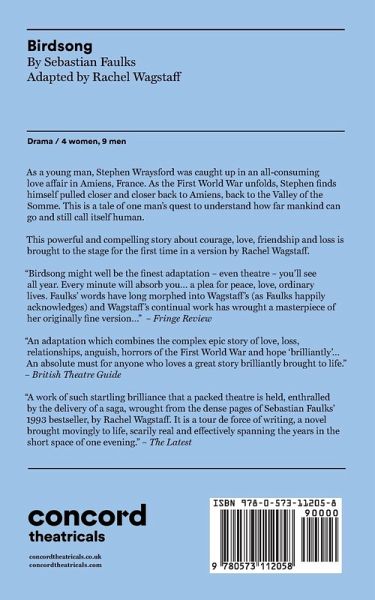 "Based on Sebastian Faulks's ... novel, Birdsong tells the story of a soldier haunted by his past. As a young man, Stephen Wraysford was caught up in an all-consuming love affair in Amiens, France. As the First World War unfolds, Stephen finds himself pulled closer and closer back to Amiens, back to the Valley of the Somme"--Amazon.com.