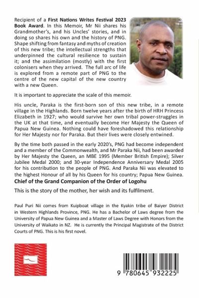 In this Memoir, Mr Nii shares his grandmother's, and his uncles' stories, and in doing so shares his own and the history of PNG. Shape shifting from fantasy and myths of creation of this new tribe; the intellectual strengths that underpinned the cultural resilience to sustain it; and the assimilation (mostly) with the first colonisers when they arrived. The full arc of life is explored from a remote part of PNG to the centre of the new capital of the new country with a new queen.