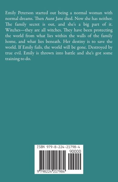Emily Peterson started out being a normal woman with normal dreams. Then Aunt Jane died. Now she has neither. The family secret is out, and she's a big part of it. Witches-they are all witches. They have been protecting the world from what lies within the walls of the family home, and what lies beneath. Her destiny is to save the world. If Emily fails, the world will be gone. Destroyed by true evil. Emily is thrown into battle and she's got some training to do.
