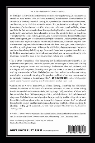 Nicholas Sammond argues that early cartoons are a key components to blackface minstrelsy and that cartoon characters such as Mickey Mouse and Felix the Cat are not like minstrels, but are minstrels. Cartoons have played on racial anxieties, naturalized racial formations, committed symbolic racial violence, and help perpetuate blackface minstrelsy.