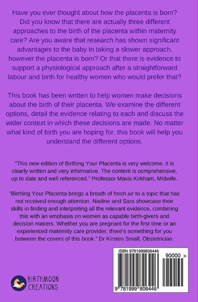 Have you ever thought about how the placenta is born? Did you know that there are actually three different approaches to the birth of the placenta within maternity care? Are you aware that research has shown significant advantages to the baby in taking a slower approach, however the placenta is born. Or that there is plenty of evidence to support a more natural approach for healthy women who would prefer that?This book has been written to help women make decisions about the birth of their placenta. We examine the different options, detail the evidence relating to each and discuss the wider context in which these decisions are made. No matter what kind of birth you are hoping for, this book will help you understand the different options.Dr Nadine Edwards and Dr Sara Wickham are world renowned and respected researchers and writers who have a long-standing interest in the birth of the placenta and the evidence relating to this. This is a completely revised and updated edition of their popular book on this topic.