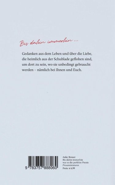 Bis dahin immerhin ...Gedanken aus dem Leben und über die Liebe, die heimlich aus der Schublade geflohen sind, um dort zu sein, wo sie unbedingt gebraucht werden, nämlich bei Ihnen und Euch.