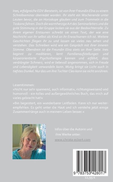 Berührende Selbstfindung in lebeniger RomanformInes, erfolgreiche EDV-Beraterin, ist von ihrer Freundin Elna zu einem Schreibseminar überredet worden. Ihr steht ein Wochenende unter Leuten bevor, die an Horoskope glauben und zum Trommeln in die Toskana fahren. Doch die warm-herzige Art des Seminarleiters und die gute Stimmung in der Gruppe locken sie aus der Beobachterrolle. Zu ihrem eigenen Erstaunen schreibt sie einen Text, der wie eine Nachricht von ihr selbst als Kind an ihr Erwachsenen-Ich ist. Weitere Geschichten fliegen ihr zu und lassen sie sich selbst und ihre nächsten Menschen neu sehen und verstehen. Das Schreiben wird wie ein Gespräch mit einer weisen inneren Stimme. Und obendrein ist die Freundin Elna, ob sie krank oder weit weg ist, stets an ihrer Seite. Ines beginnt zu meditieren, lernt Familienaufstellungen und körperorientierte Psychotherapie kennen und erfährt, dass verdrängter Schmerz, wird er liebevoll angenommen, sich in Freude und Lebendigkeit verwandeln kann. Mutig bringt sie Licht auch in tiefes Dunkel. Nur das um ihre Tochter Cleo kann sie nicht anrühren.Leserstimmen:»Nicht nur sehr spannend, auch informativ, richtungsweisend und humorvoll - ein tolles und außergewöhnliches Buch, das mich auf vieles gebracht hat!«»Bin begeistert, ein wunderbarer Leitfaden. Kann ich nur weiter-empfehlen. Es geht unter die Haut und ich verstehe jetzt einige Zusammenhänge auch in meinem Leben besser.«