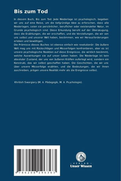 In diesem Buch, Bis zum Tod: Jede Niederlage ist psychologisch, begeben wir uns auf eine Reise, um die tiefgründige Idee zu erforschen, dass alle Niederlagen, seien sie persönlicher, beruflicher oder existenzieller Natur, im Grunde psychologisch sind. Diese Erkundung beruht auf der Überzeugung, dass die Erzählungen, die wir erschaffen, und die Vorstellungen, die wir von uns selbst und unserer Welt haben, bestimmen, wie wir Herausforderungen erleben und bewältigen.Die Prämisse dieses Buches ist ebenso einfach wie revolutionär: Die äußere Welt mag uns mit Rückschlägen und Misserfolgen konfrontieren, aber es ist unsere psychologische Reaktion auf diese Ereignisse, die wirklich bestimmt, welche Auswirkungen sie auf unser Leben haben. Die Niederlage ist kein absoluter Zustand, der uns von äußeren Kräften auferlegt wird, sondern ein Konstrukt, das wir selbst geschaffen haben. Die Geschichten, die wir uns über unsere Misserfolge erzählen, und die Bedeutungen, die wir ihnen zuschreiben, prägen unsere Realität mehr als die Ereignisse selbst.