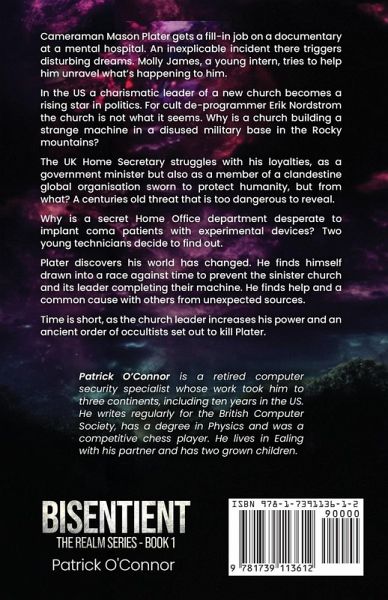 Cameraman Mason Plater gets a fill-in job on a documentary at a mental hospital. An inexplicable incident there triggers disturbing dreams. Molly James, a young intern, tries to help him unravel what's happening to him. In the US a charismatic leader of a new church becomes a rising star in politics. For cult de-programmer Erik Nordstrom the church is not what it seems. Why is a church building a strange machine in a disused military base in the Rocky mountains? The UK Home Secretary struggles with his loyalties, as a government minister but also as a member of a clandestine global organisation sworn to protect humanity, but from what? A centuries old threat that is too dangerous to reveal. Why is a secret Home Office department desperate to implant coma patients with experimental devices? Two young technicians decide to find out. Plater discovers his world has changed. He finds himself drawn into a race against time to prevent the sinister church and its leader completing their machine. He finds help and a common cause with others from unexpected sources. Time is short, as the church leader increases his power and an ancient order of occultists set out to kill Plater.